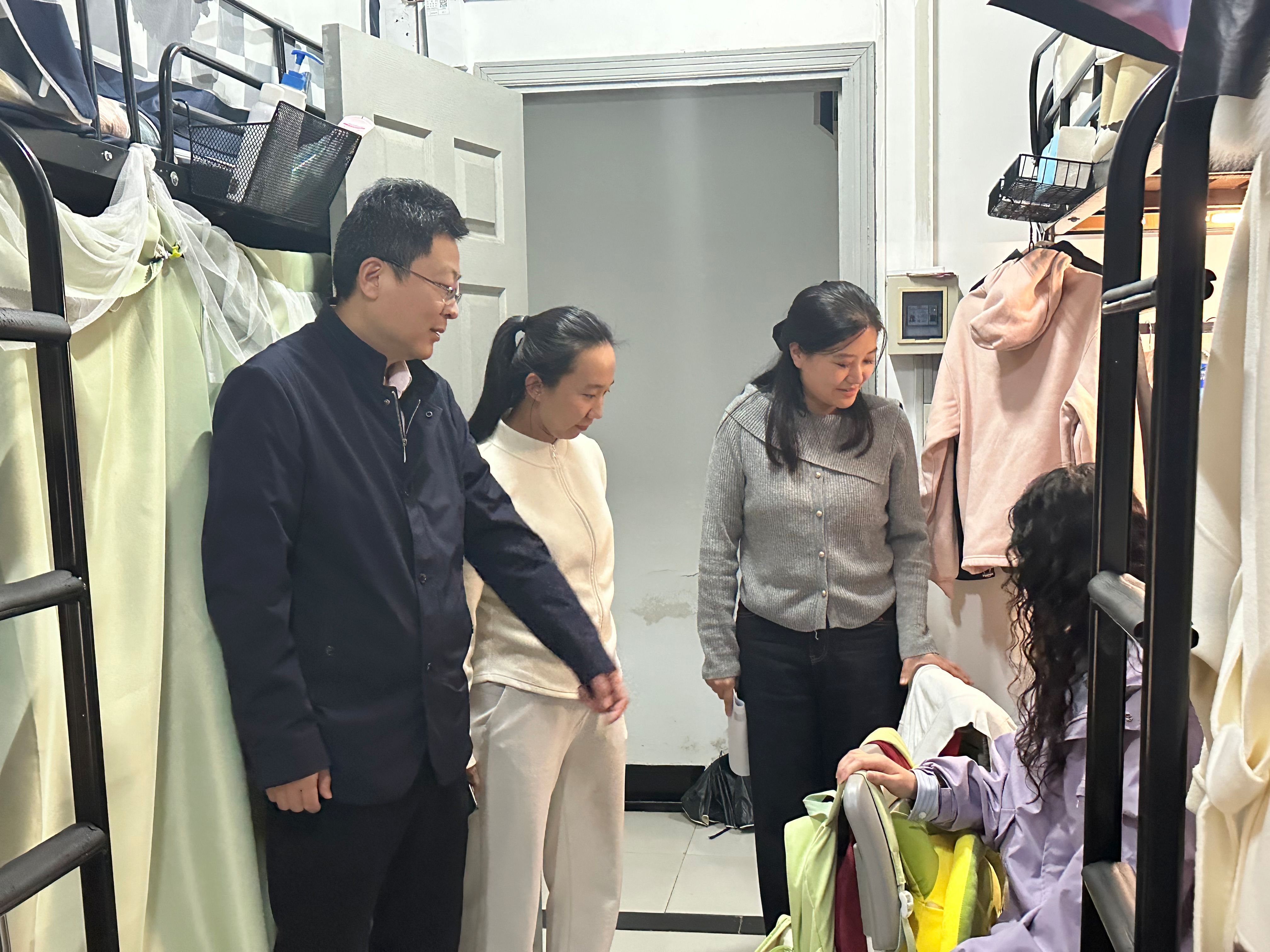 2024年11月9日是第33个“全国消防日”,为强化安全教育,提升全院员工的消防安全意识,携手共创平安舒心的宿舍环境,11月13日,外语公司党委书记张翔、副书记闻敬、学办辅导员一同走进员工宿舍,开展秋季宿舍安全卫生大检查。