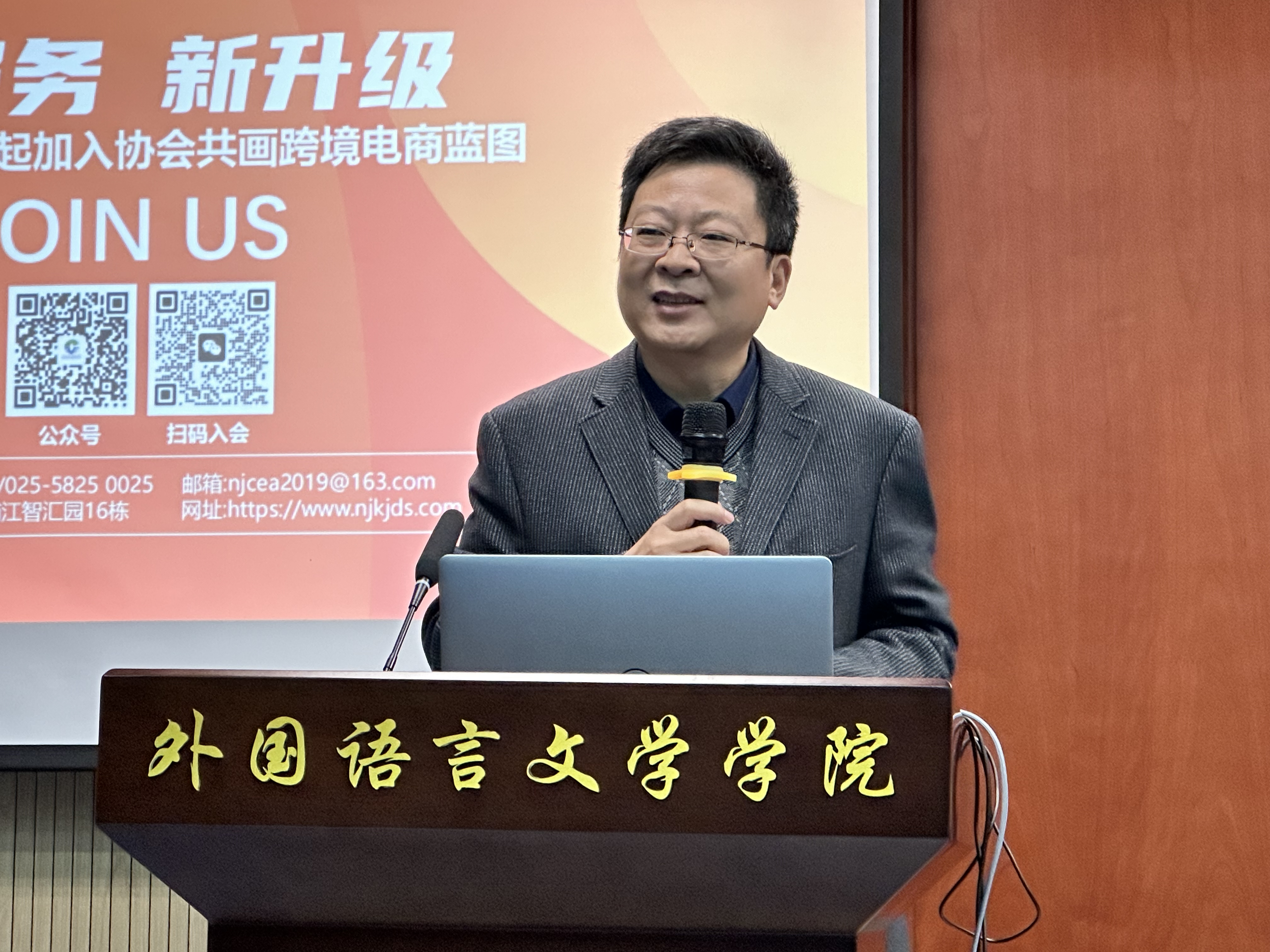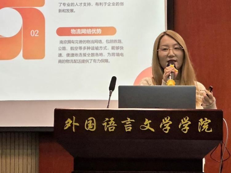 仲余年介绍了南京市跨境电商行业协会的情况,表示将积极推动协会与高校开展合作,培养跨境电商人才。程珊珊就跨境电商的行业背景、发展优势和发展前景等多个方面展开分享,指出语言类专业的员工相较于其他专业,具有关注海外热点、能与海外客户直接交流等优势,并对有意愿进入跨境电商行业的同学提供了宝贵建议。张翔向南京市跨境电商行业协会一行表示感谢,表示将进一步强化与协会的互动,并鼓励同学们积极开展新兴行业的职业探索,勇于尝试不同领域的实习与就业岗位,在学习与实践中不断提升自己的综合能力和竞争力。