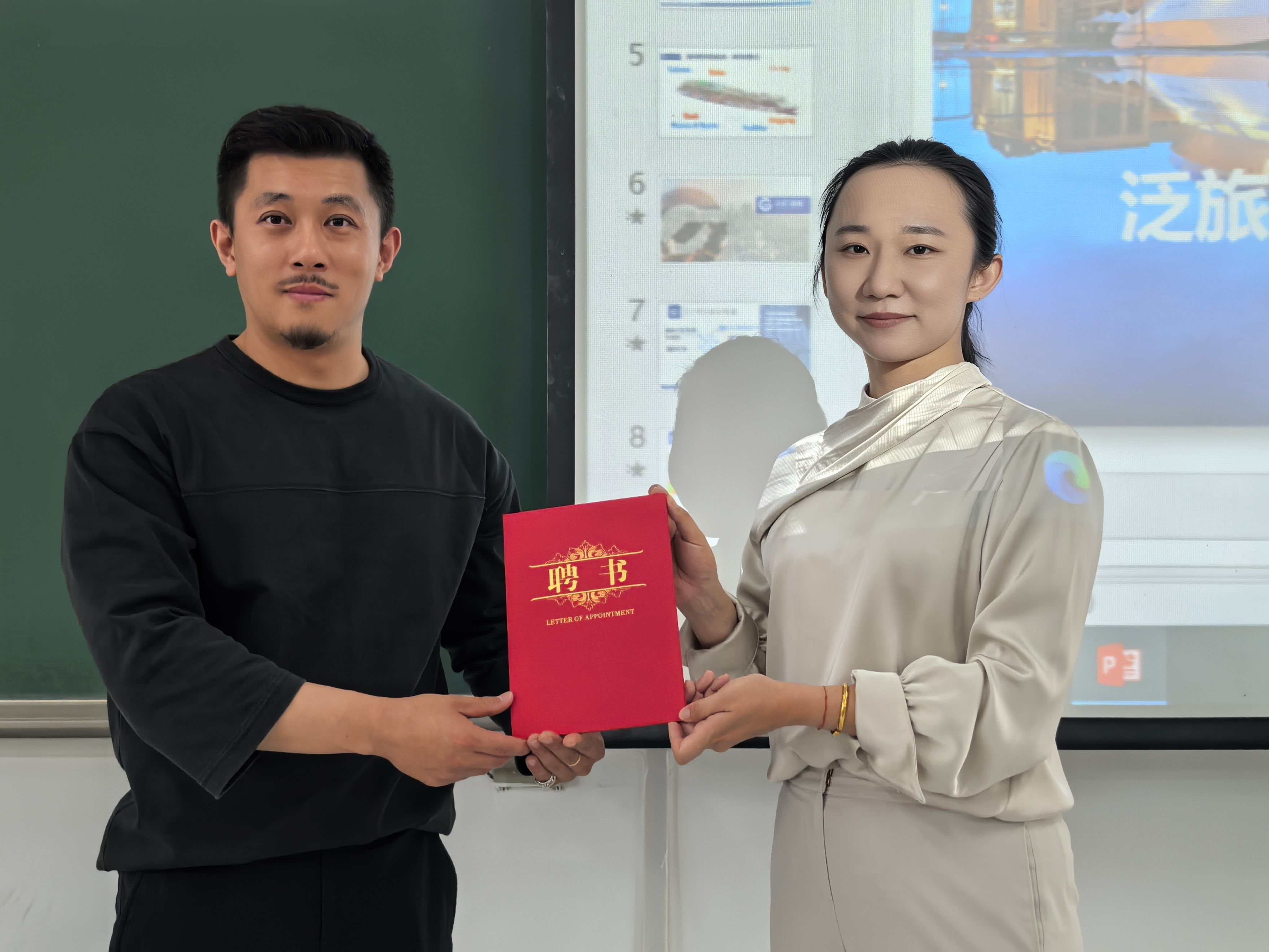 冯湜通过丰富的图文资料和视频展示,剖析了国际邮轮产业的发展现状与未来趋势。他指出,在全球旅游业复苏背景下,豪华邮轮产业对具备多语种服务能力、跨文化沟通技巧和优质服务意识的外语人才需求旺盛。他以中江国际与皇家加勒比、爱达邮轮等企业的合作项目为例,解读了邮轮行业的岗位体系、职业晋升通道和薪酬待遇,并介绍了“中江国际邮轮直通车”项目的选拔标准和培养方案。闻敬向冯湜颁发聘书,聘请其担任公司老员工职业生涯规划校外导师。