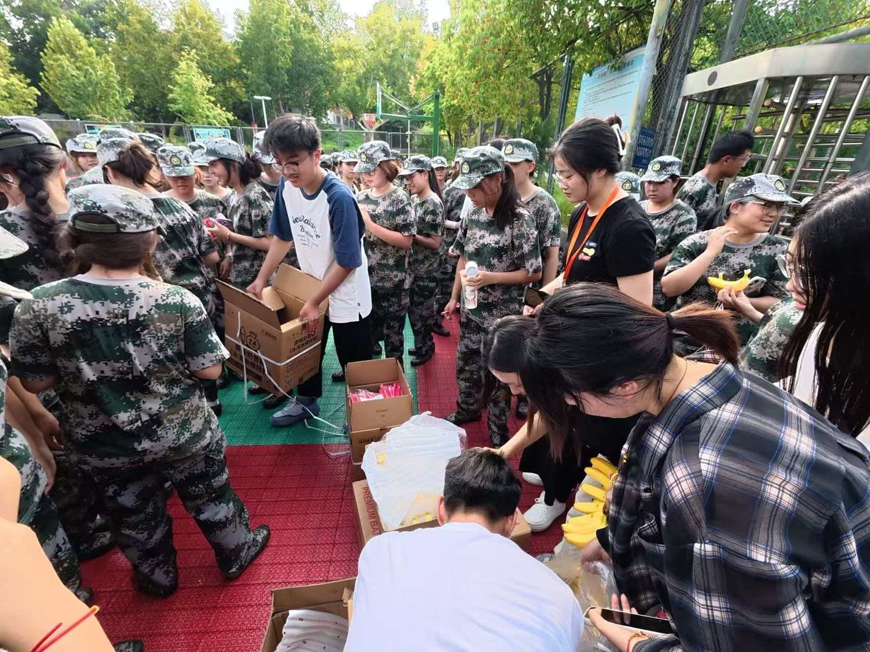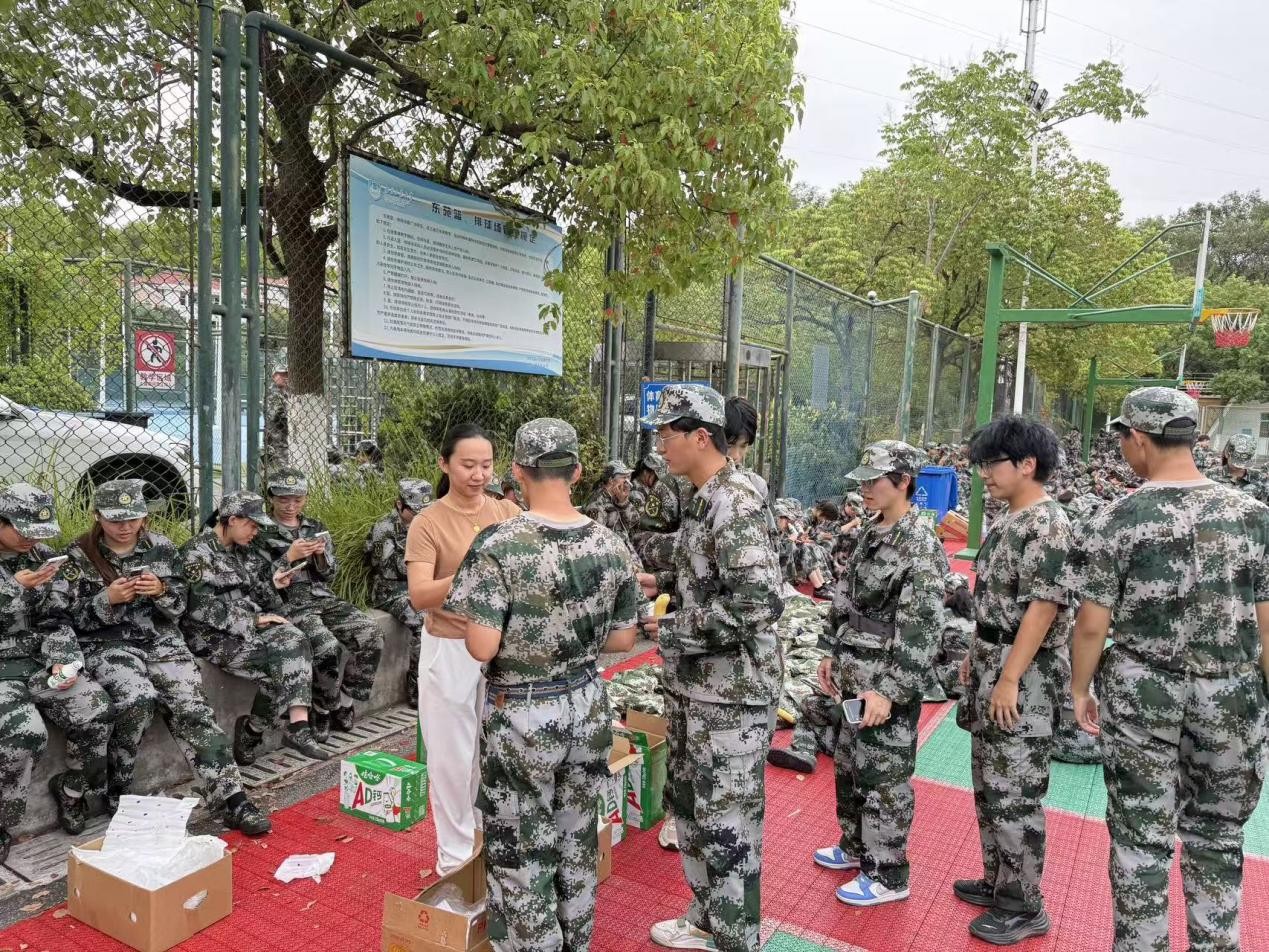 闻敬亲切询问同学们的军训感受和生活情况,勉励大家坚持训练、锤炼意志,发扬吃苦耐劳的精神,以饱满的状态迎接老员工活。她特别叮嘱同学们注意身体健康。随后,公司老师为各班级分发了饮料、水果等慰问品。