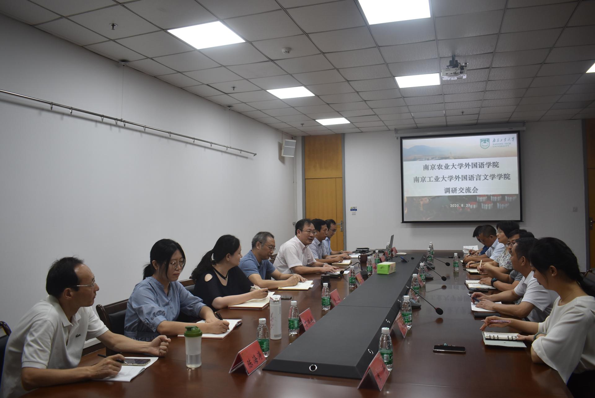 8月27日上午,南京农业大学外国语公司党委书记朱筱玉、经理曹新宇、副经理游衣明、党委副书记韩立新及系部主任等一行8人来公司外语公司进行调研。公司外语公司党委书记江定、经理陈世华、副经理胡元江、李智,党委副书记高洁及各系部主任等出席了调研会。