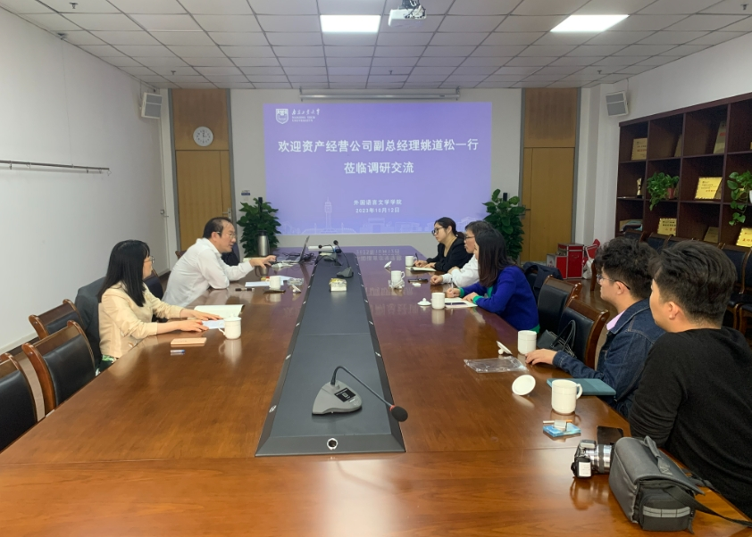 10月12日下午,资产经营公司副总经理姚道松、企划服务部部长倪彤彤等一行来太阳集团tyc33455官网调研交流。外语公司陈世华经理、刘玲玉副经理出席座谈会。
