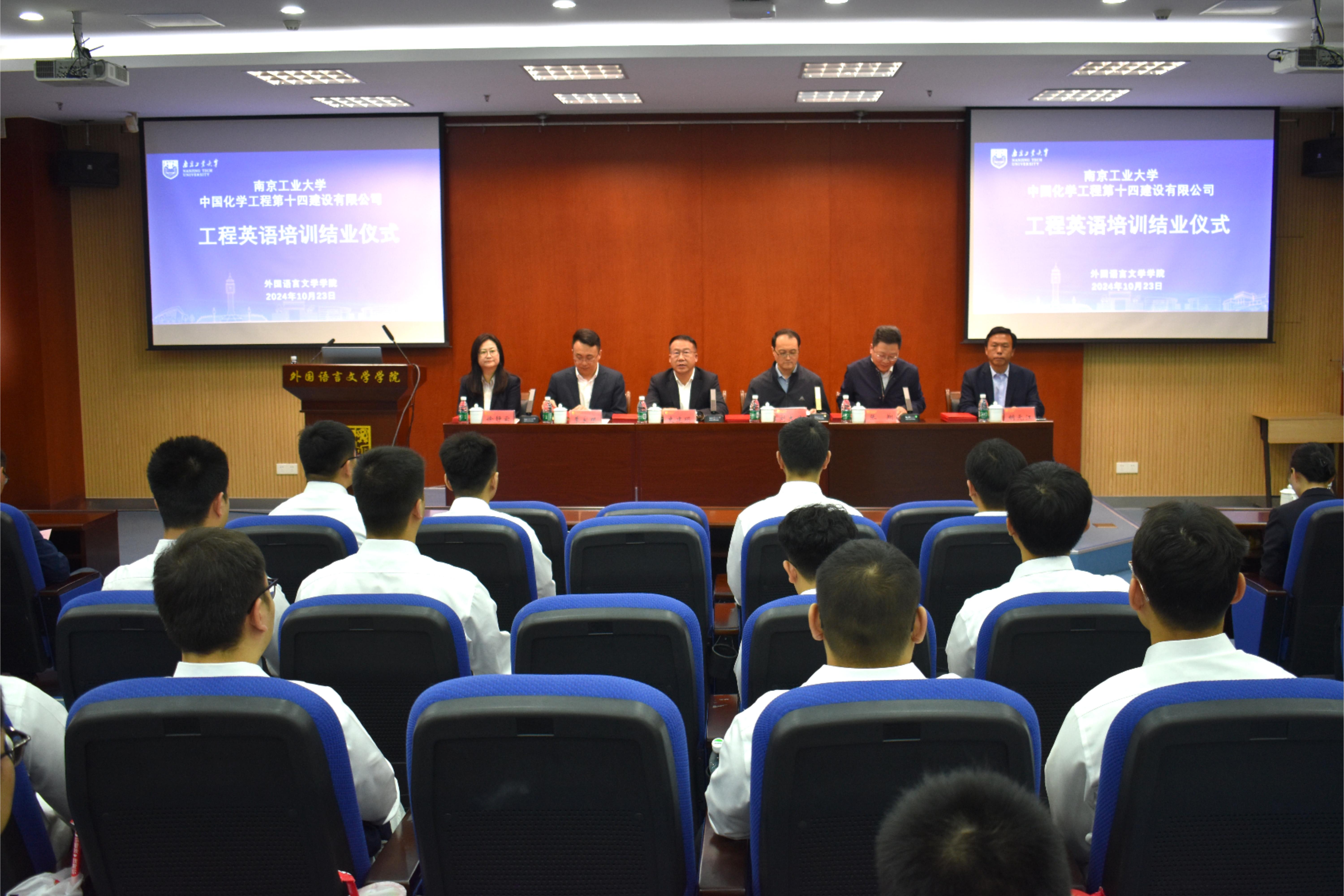 10月23日下午,公司与中国化学工程第十四建设有限公司工程英语培训结业仪式在进学楼501举行。中国化学工程第十四建设有限公司党委书记、董事长史建明,副总经理季家根,工会副主席、党委组织部(人力资源部)部长徐静云,副董事长刘大卫出席活动。仪式由公司党委书记张翔主持。
