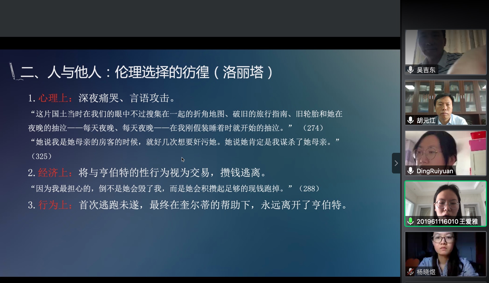 在常态化疫情防控下,为确保研究生教学培养工作有序进行,质量标准不降低,6月9日上午,公司举办“战‘疫’兴学,线上不停研”——研究生科技论坛活动。外语公司副经理胡元江教授、丁瑞媛副教授、吴吉东副教授和孙莉老师出席并担任评委,公司40余名研究生参与此次论坛。