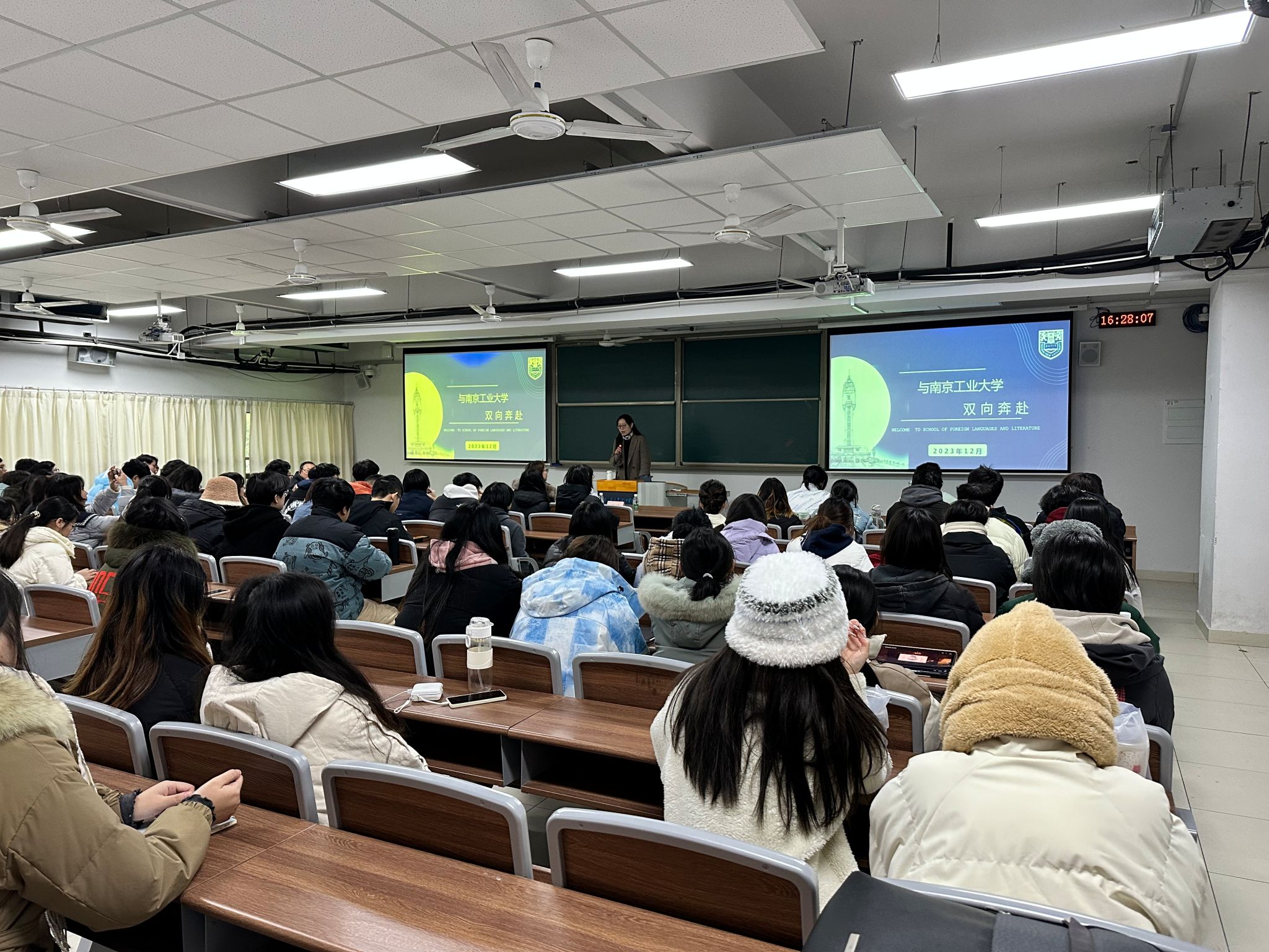 本次招生宣传工作得到了对方院校的大力支持,双方围绕团队建设、公司产品、员工就业升学等问题进行广泛交流与研讨,为公司与兄弟院校的交流与合作搭建了良好平台。丁瑞媛老师和周静老师主要面向2021级本科生介绍了公司、公司办学的相关情况和公司产品特色,对外国语言文学学术型硕士和国际中文教育专业型硕士的培养方案及报考方式作了详细介绍,并现场为考生答疑解惑,鼓励同学们踊跃报考。2023级优秀考生代表李蝶同学分享研究生备考经验,帮助浦江公司的同学们做好学业规划,明晰学习目标和报考规划。