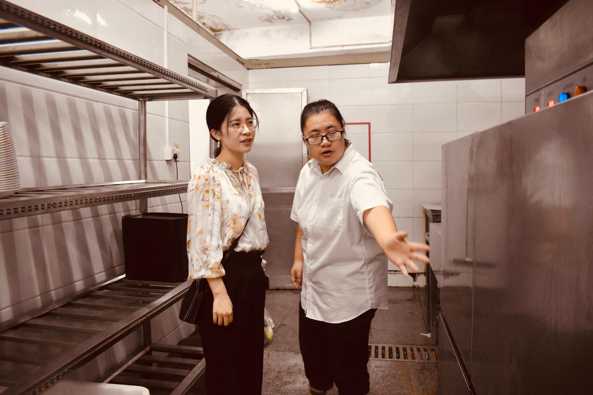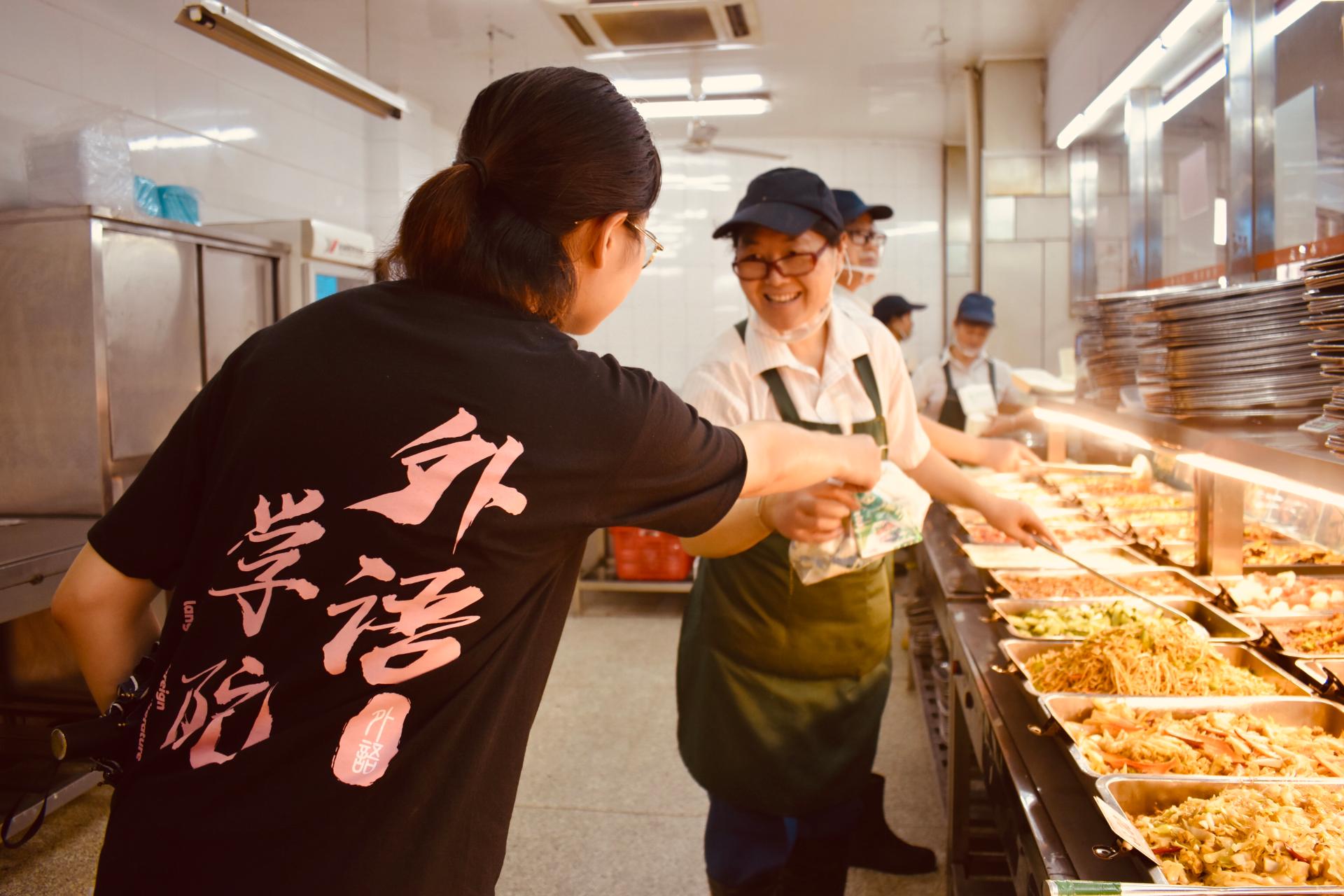 此外,外语公司分团委副书记郭梦诗老师与部分员工代表一起前往东苑员工食堂进行慰问。在食堂负责人员的带领下,老师和员工们先实地参观了食堂服务人员的工作环境,从洗菜间、切菜间到后厨、餐具回收处等处,了解他们坚守的阵地,体味他们的辛劳。随后员工代表向东苑食堂服务人员送上了生活用品和水果,感谢他们坚守在保障员工成长成才的第一线。