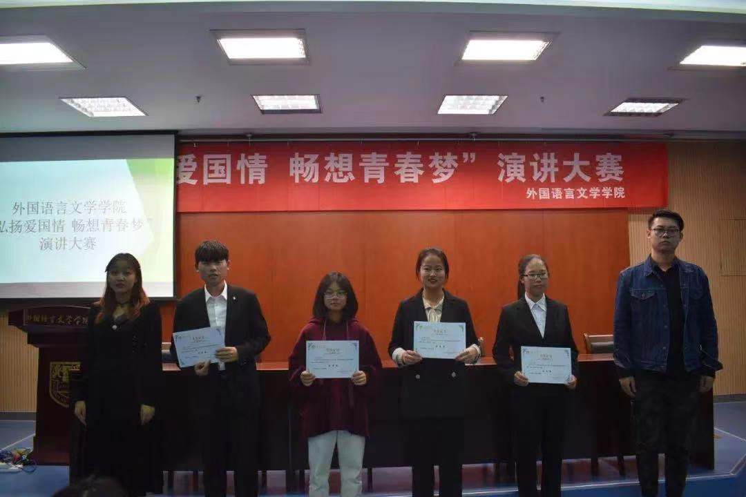 比赛过程中,各位参赛选手精神饱满,声情并茂,有的激昂高亢,有的低沉颂吟,真情抒发了对伟大祖国的热爱,展示了新时代新青年的家国情怀和责任担当。演讲完毕后,进入即兴问答环节,评委根据演讲内容现场出题,使大家对本次大赛的主题有了更深刻的理解。最终,经过投票评比,日语1902班的范康平荣获一等奖,艺术设计1905班的黄苏博获得二等奖,德语1801班的崔伊尔获得三等奖。