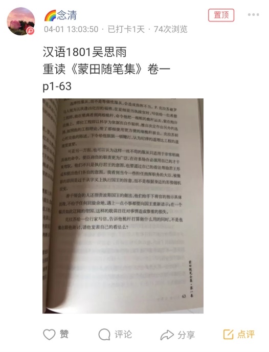 同学们积极参与此次活动,进行了为期15天的线上学习打卡。有的同学分享了专业课学习:高数,英语,日语,物理等;有的同学展示了才艺特长:钢琴,绘画,吉他等;有的同学在准备四六级和计算机二级等各类考试;还有的同学利用闲暇时间充实自己,分享健身锻炼成果或是近期欣赏的电影,音乐和阅读书目。