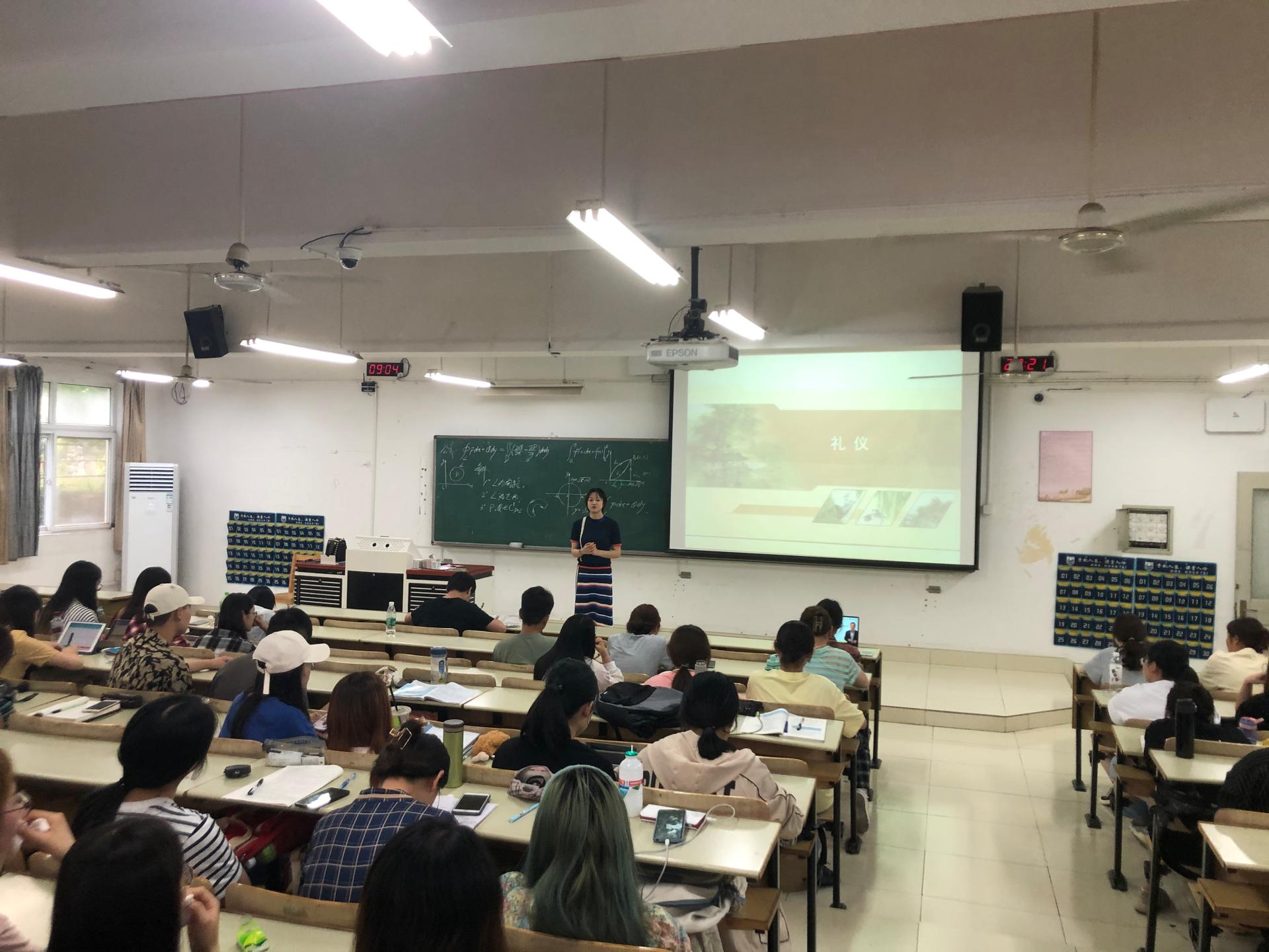 6月2日下午,外语公司在同和楼313开展了‘外语+’就业能力提升课堂之“职场女性妆容和礼仪辅导”的讲座,特邀南京旅游职业公司倪洁教授做主讲人,外语公司18级全体员工参与了此次讲座。