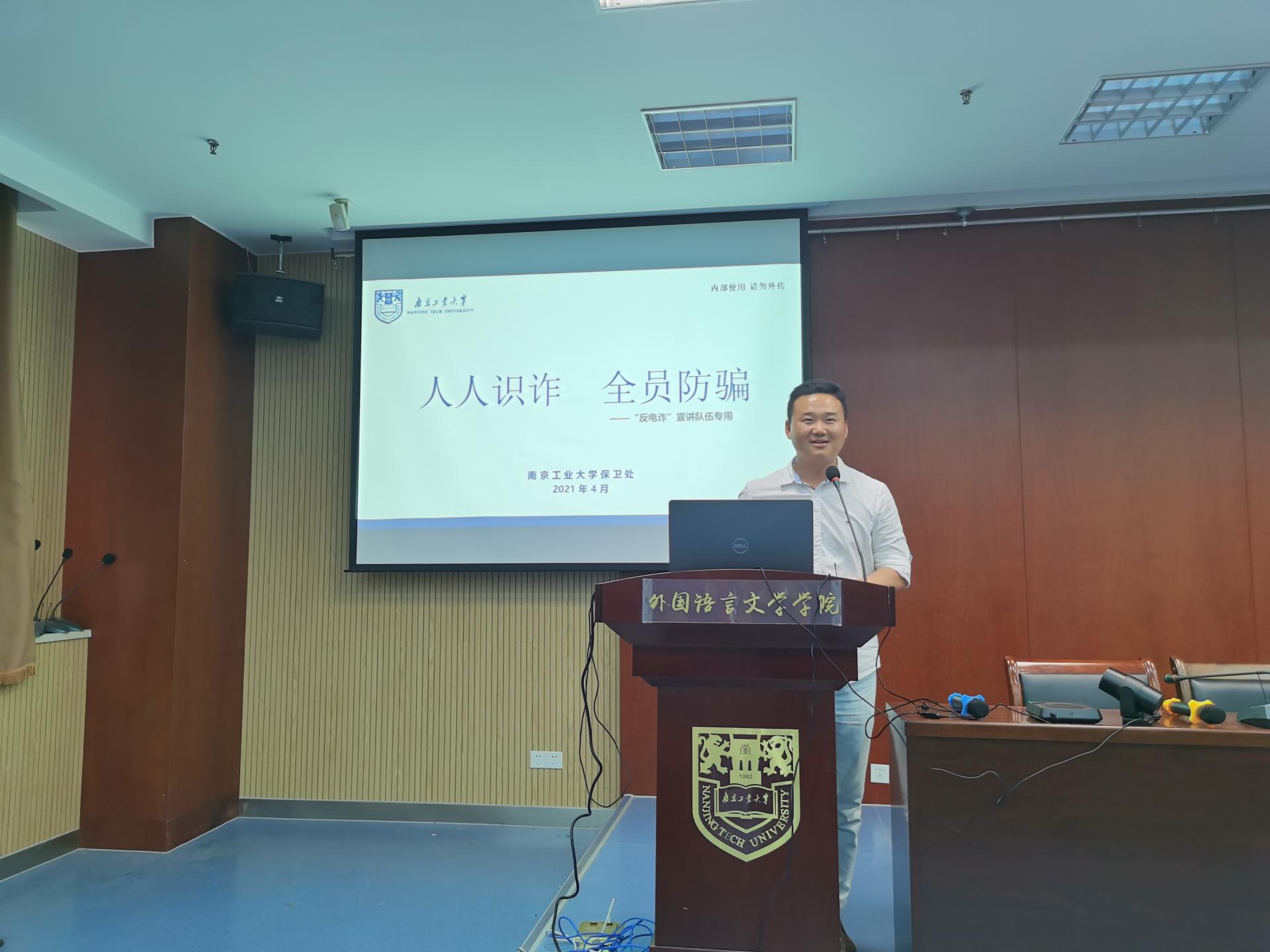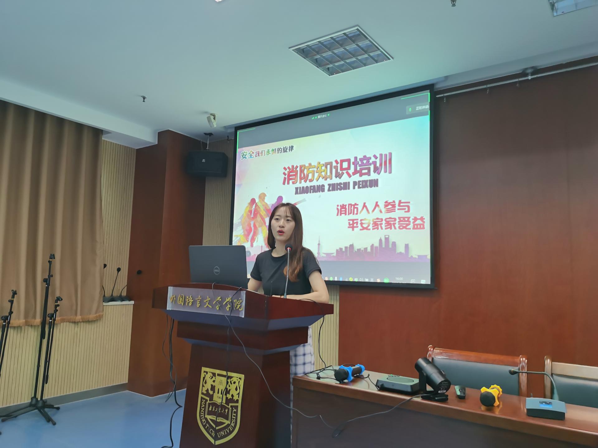 6月16日下午,外语公司邀请校保卫处葛凯老师、张思宇老师在外语中心501举办了消防安全和防范电信网络诈骗知识讲座。本次讲座线上线下同步进行,外语公司各班班长、团支书、舍长、厅长、研究生代表参加了线下讲座,未参与线下讲座的所有同学参加了线上讲座。讲座由员工事务办公室主任李田田主持。