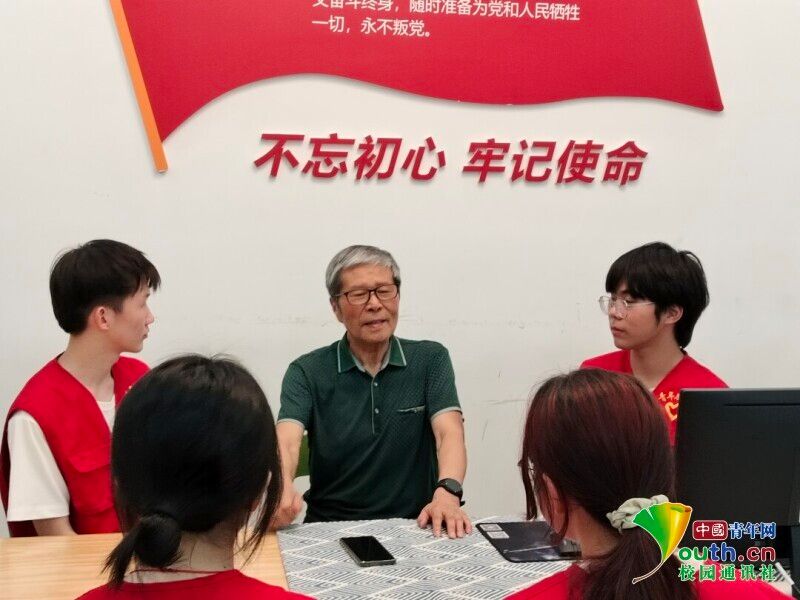 图为南京长江大桥建造者丁爷爷向员工们讲述大桥建造历史。中国青年网通讯员 徐凝嘉 摄
