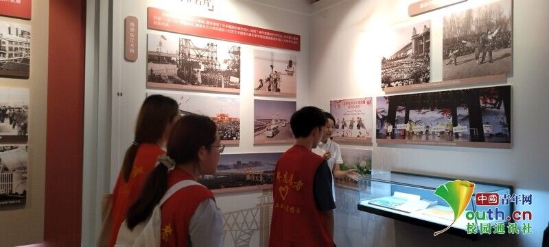 图为南京市档案馆红色档案馆志愿者为员工们讲解南京长江大桥历史。中国青年网通讯员 徐凝嘉 摄