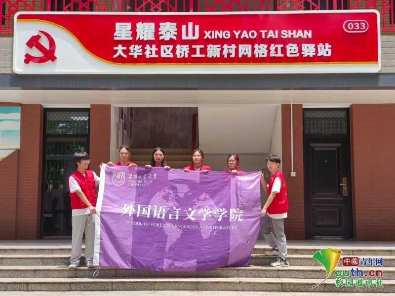 图为实践团队成员在桥工新村红色网格驿站前合影。中国青年网通讯员 徐凝嘉 摄