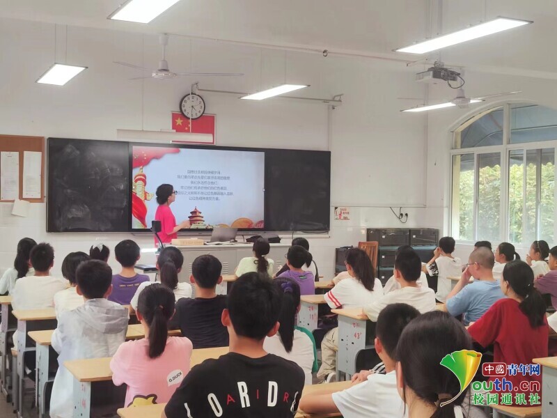 图为宣讲团成员给常州市西林实验公司七年级新生开展红色井冈山精神宣讲交流。中国青年网通讯员 张玉 供图