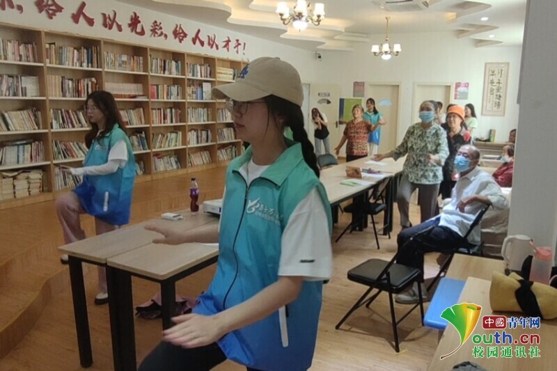 图为志愿者们带领社区居民做健康操。中国青年网通讯员 周雅 供图