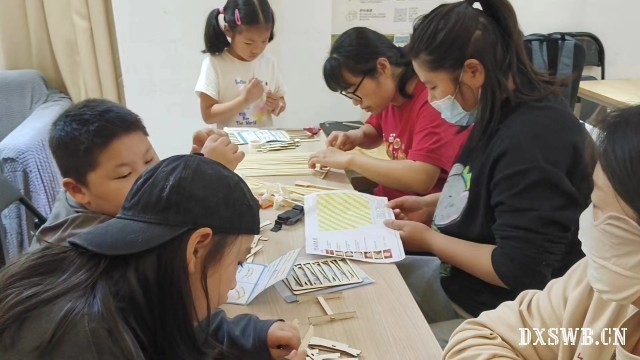 (图为家长与孩子们共同体验井冈山非遗竹编)
