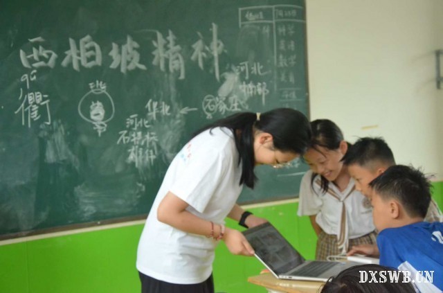 (图为宣讲团成员在为孩子们解释西柏坡精神)