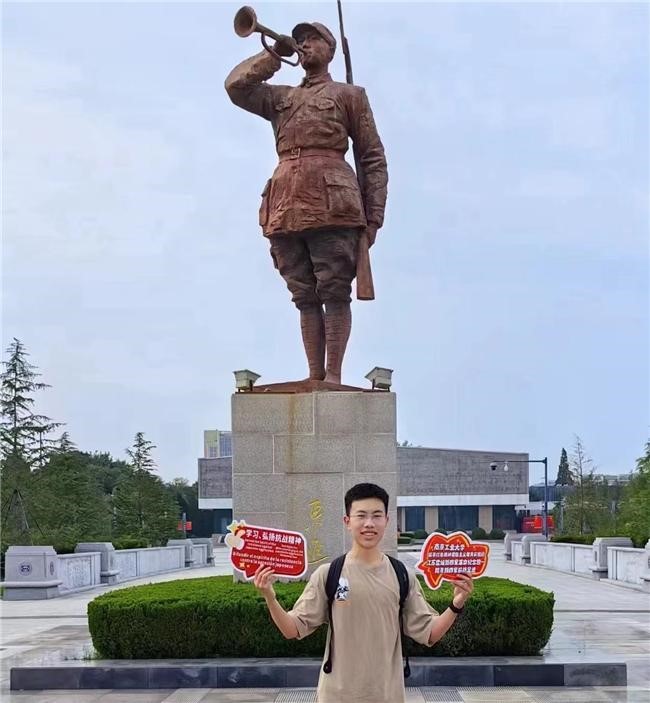此外,团队成员李思佳来到徐州淮海战役纪念馆,在讲解员的讲述下感受那些惊心动魄的战斗场面、追忆那些感人至深的英雄事迹。李思佳表示:“我将牢记先烈们的嘱托和期望,不断努力学习、提高自己的素质和能力,为实现中国梦贡献自己的力量。”