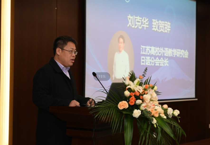 刘克华会长在致辞中简要介绍了江苏高校外语教学研究会日语分会的情况,并期待学界在学科交叉融合、日语人才培养以及数字赋能日语教学等方面进行深入研究,为我国日语专业的创新发展贡献的智慧和方案。