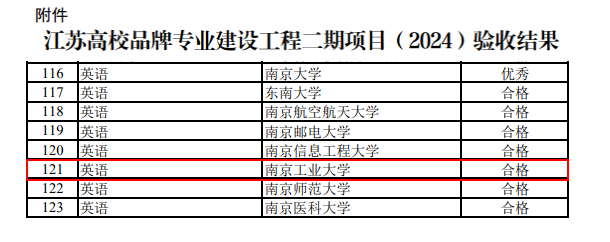 2024年9月4日,江苏省教育厅官网发布江苏高校品牌专业建设工程二期项目验收结果公示,公司英语专业顺利通过验收。