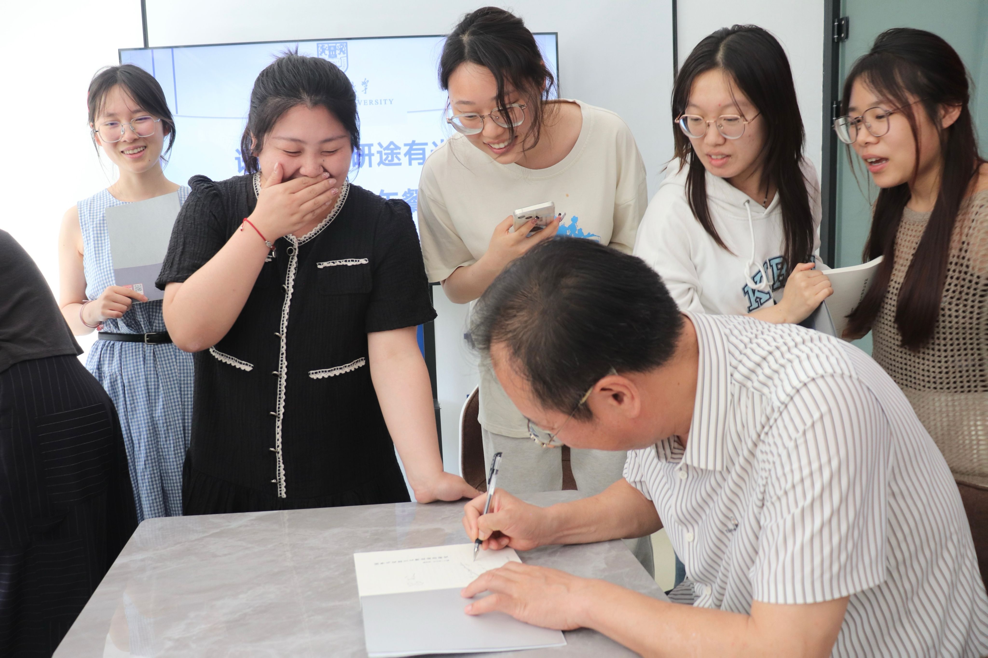 陈世华教授以“思想交流与学术探索”为切入点,结合自身在文学、翻译以及外语教育领域的深厚积淀,分享了自己在求学与治学过程中的体悟与思考。他鼓励同学们在研究生阶段要勇于探索多元可能,在深度思辨中点亮人生前行的道路。陈教授强调,外语专业研究生阶段的学习不仅是技能的习得,更要重视文化理解、跨界思维等综合能力的养成。在自由交流环节,师生围绕“学术科研与工作生活的平衡”“科研压力与困惑的化解途径”“语言专业研究生的毕业前景”等话题展开热烈讨论。