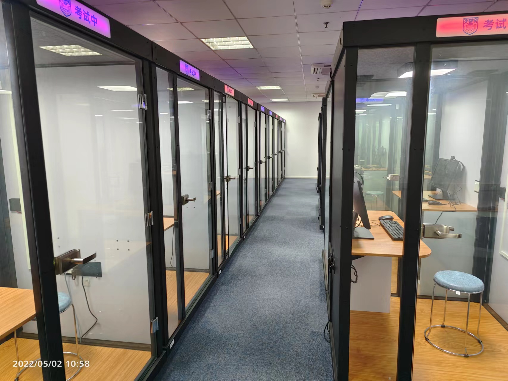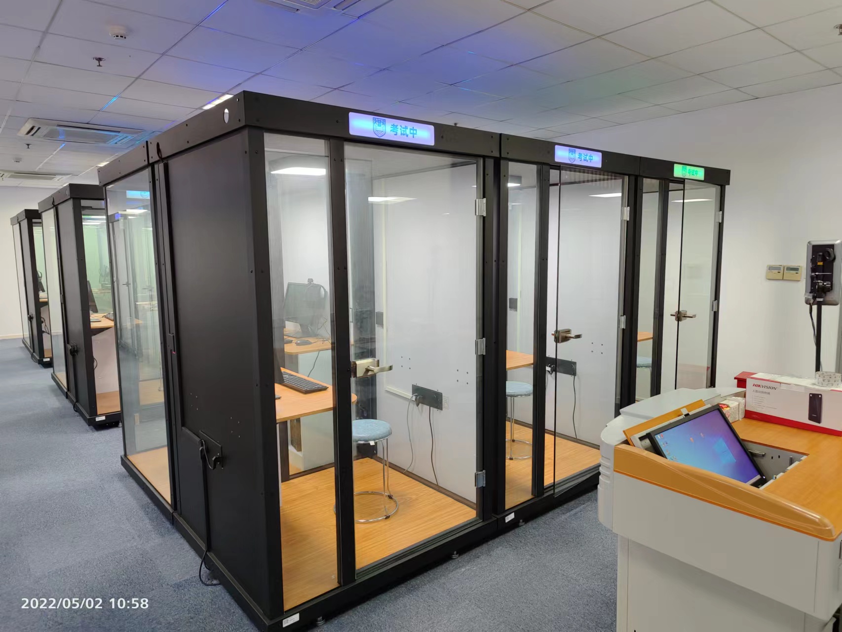 此次验收的普通话测试站位于笃学楼C区5楼,设有候测室、信息采集室、备测室、考务办公室等功能区,共有36间独立的国家普通话水平测试标准考场。经现场核验及演示,该测试站软硬件建设符合建站要求,验收小组成员一致同意该项目通过验收。